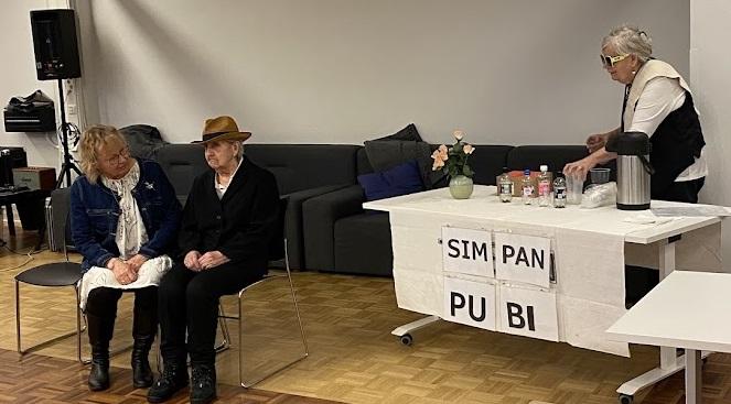 Tikkurilan Seudun Eläkkeensaajien ohjelmaryhmän esilaulaja Aino Parkkonen veteli "Mua lemmitkö vielä, oi Kustaa..." kuin Brita Koivunen muinoin. Kirsti Litukka avasi Simpan Pubin ja kohta ilmestyi asiakkaaksi se kuuluisa Kustaa (Salme Lamminmäki) ja sussunsa (Helena Tauren), hetken perästä myös upea Abba-imitaatti (Leila Kallio) hopeahaalarissaan.