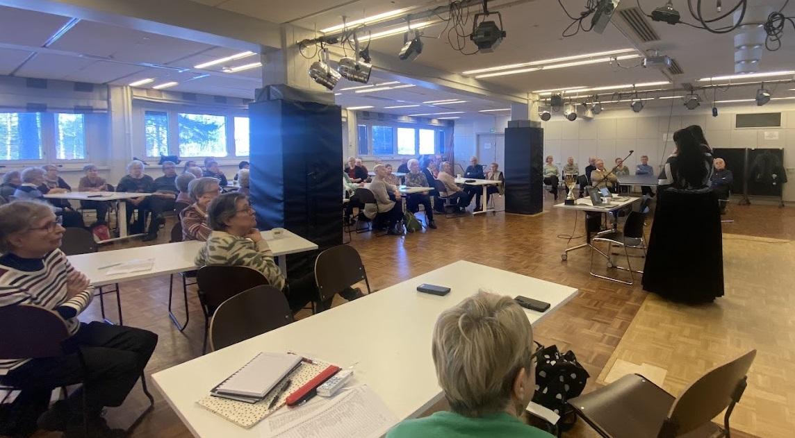 Aihepiiri tuntuu koskettavan jokaista, niin paljon kysymyksiä ja pöytäpulinaa syntyi. Eikä ihme, sillä kaikilla meillä on kokemuksemme, joillain harmillisiakin. Ymmärrän ikäihmisten voimattomuuden ja avuttomuuden, kun tuntee tulleensa väärin kohdelluksi. Tänään myötätuntoni oli myös näiden puhujien puolella, jotka tekevät varmasti parhaansa, mutta eivät voi mitään esimerkiksi sille, etteivät tiedot siirry organisaatiolta toiselle eikä tietojärjestelmät palvele niin kuin odotamme ja toivomme. Tämmöisiä digitalisaation marionettejahan me olemme, toivottavasti emme kuitenkaan maailman tappiin! (mh)